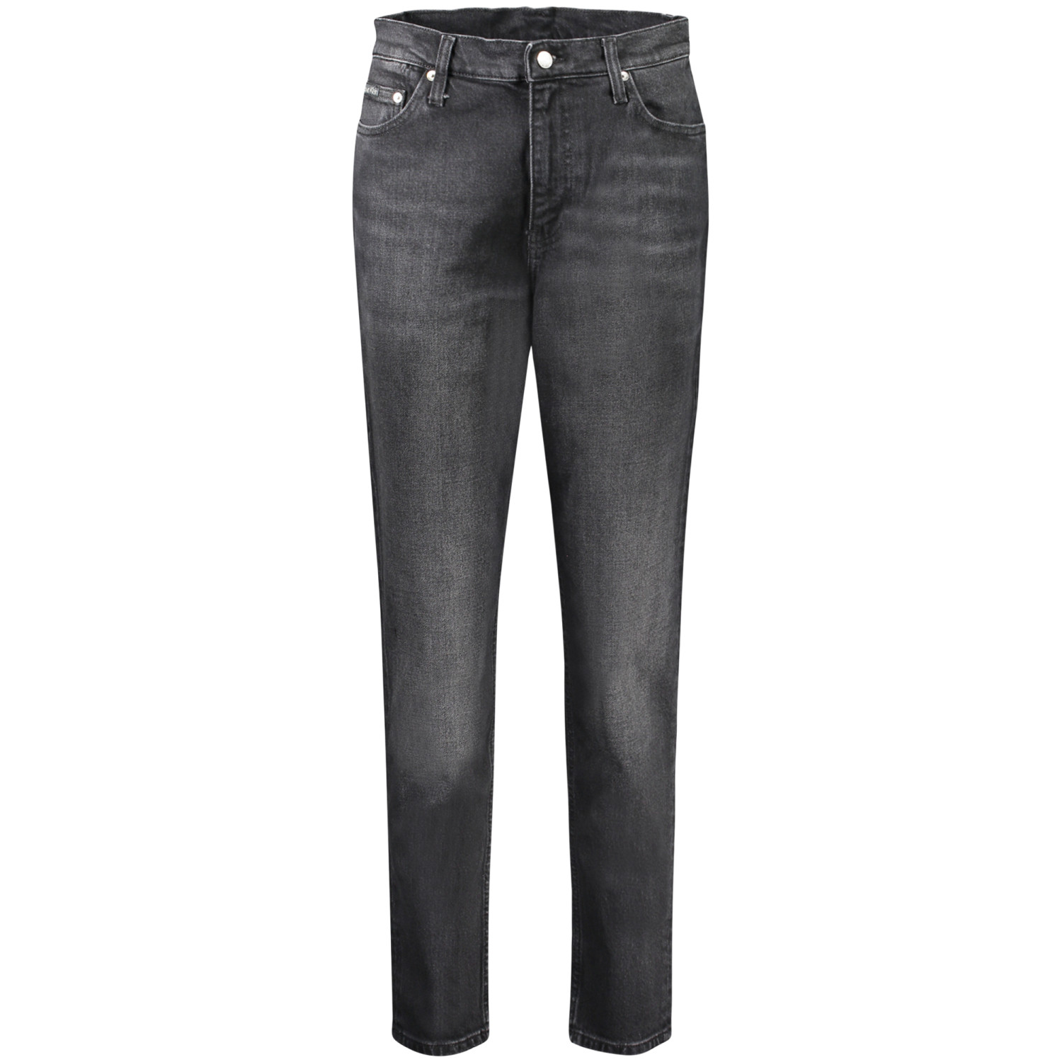 MOM JEANS, 5 TASCHE, BOTTONE E ZIP, LOGO