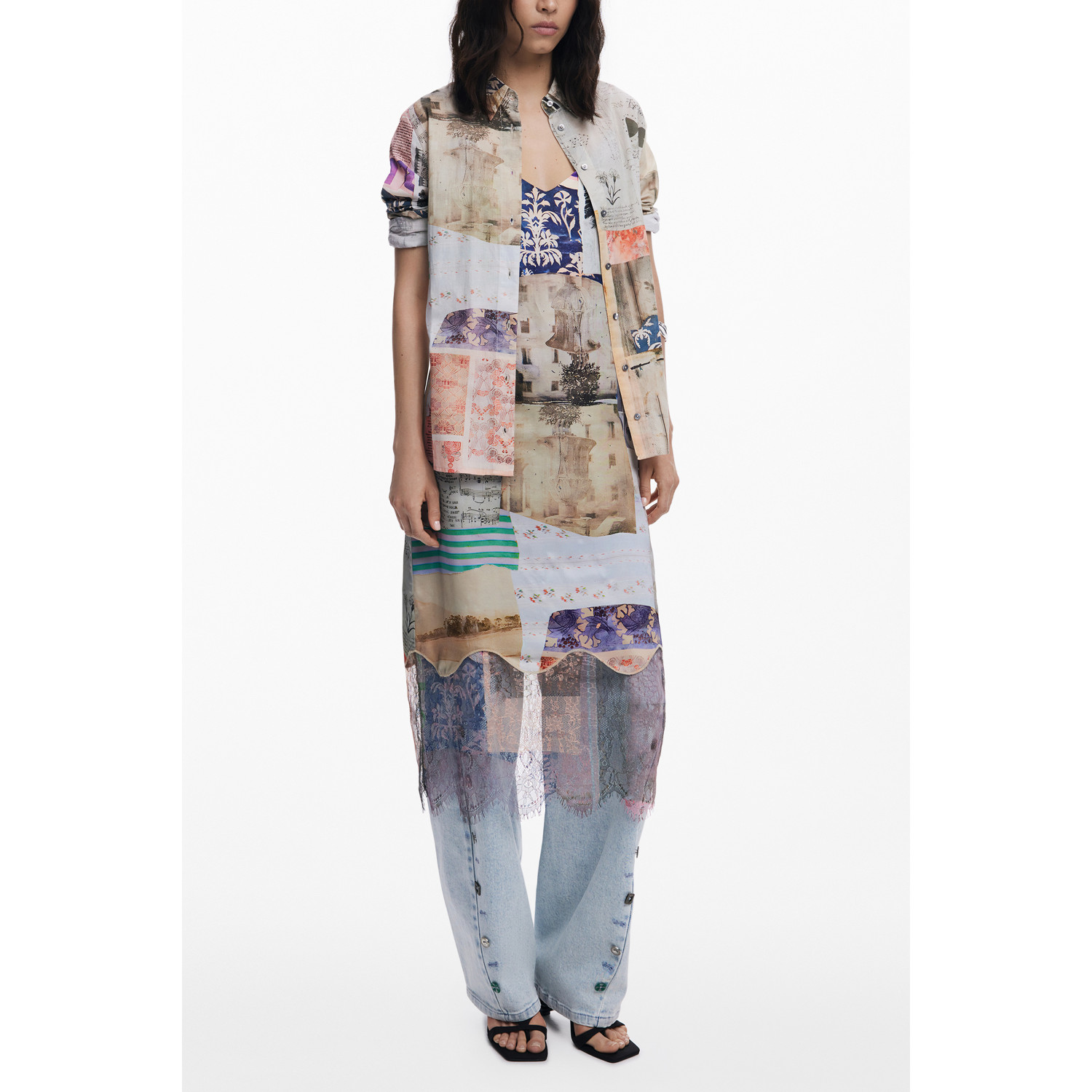CAMICIA MANICHE LUNGHE, PHOTOPOSTAL, COLLO ALL'ITALIANA, POLSINI 2 BOTTONI, STAMPA, BOTTONI, LOGO