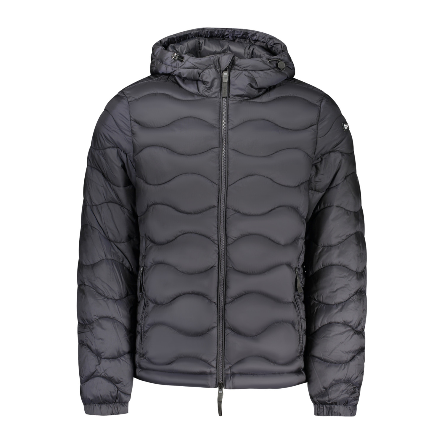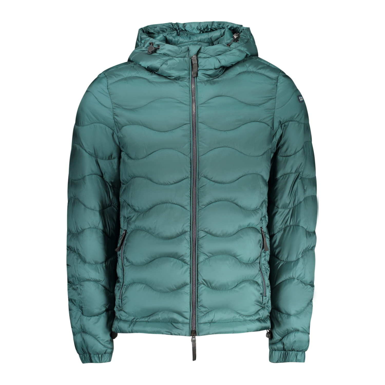 GIUBBOTTO MANICHE LUNGHE CON CAPPUCCIO, 2 TASCHE ESTERNE, 2 TASCHE INTERNE, DETTAGLI A CONTRASTO, ZIP, APPLICAZIONE, LOGO